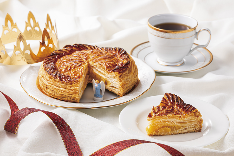 ケーキの中から陶器のフェーブが出てきた人は1年間幸運に!バターの香り豊かなパイには濃厚なアーモンドクリームがたっぷり。新春はフランスの伝統菓子「ガレット・デ・ロワ」を囲んで、楽しく2026年を占ってみてはいかがでしょうか。